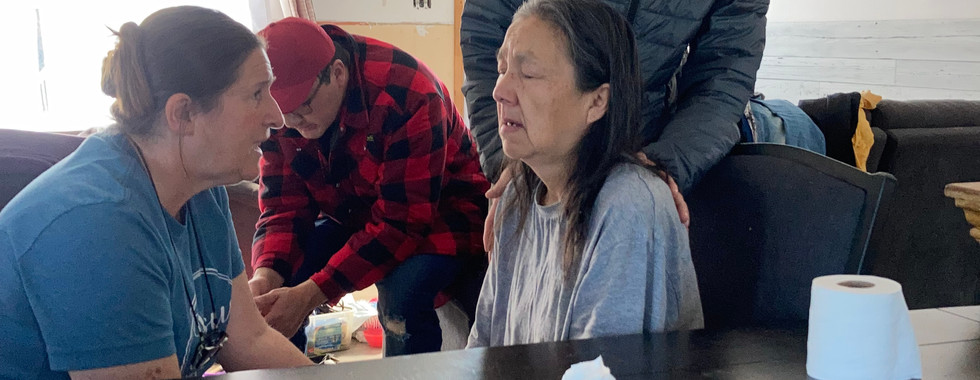 In early October, the Lord opened a door for us to go minister to the people of the Obedjiwan reserve. We were welcomed by the brothers and sisters there who showed true Christlike hospitality and love by hosting us and sharing everything with us. On our first day there, the men went to different houses to pray for people's needs and share the gospel, while the women went to the mountain to pray. We saw early on the enemy's work in this community, as someone tried to commit suicide right after we met with his mother to share the Good News. We also learned of another woman who had just tried to commit suicide. We came to her house and met with her as her arms were still bloody. We got to pray for her before she was taken to the hospital.